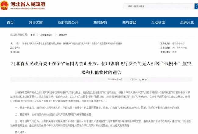 近日,為確保中國共產黨成立100周年慶?;顒悠陂g相關飛行活動安全,杜絕各類違法違規飛行活動發生,多省市發布禁飛通告。各位飛行愛好者需多關注,合法、安全飛行。河北省政府最新...